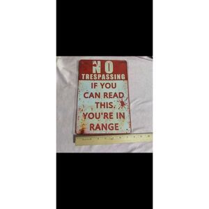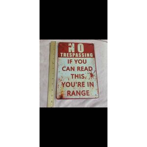 Awesome sign! It has 4 predrilled holes so you can easily mount it to a tree, fence, gate, etc. This is New in package. Waterproof metal tin sign. Grab one while they last! Sizing in photos!