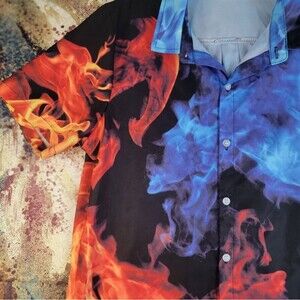 Funnycokid Fire & Ice Button Down Short Sleeved Shirt X Large Wicked Cool