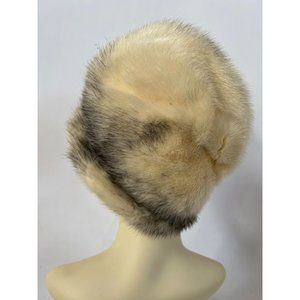 Vintage fur hat by furrier Mr. Henri in New York. One size, Champagne and grey colored fur.