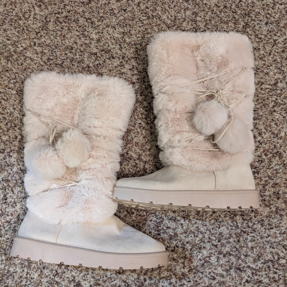 This cozy warm creme colored boot is a size 10; fits like a 9 1/2.