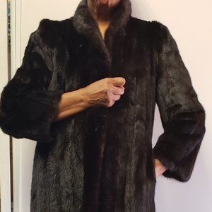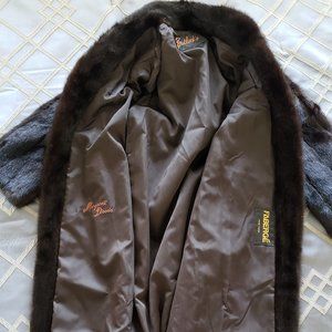 Bullock's New York Faberge' Quarterly length sleeves, Midcalf Fur coat. Great condition. Has a personalized engravement. No size noted inside. Coat fits 5'9," and approx size 12 woman.