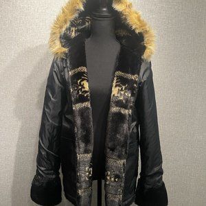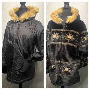 Guide Gear Faux Fur Reversible Water Resistant Hooded Jacket M Snowflake Design