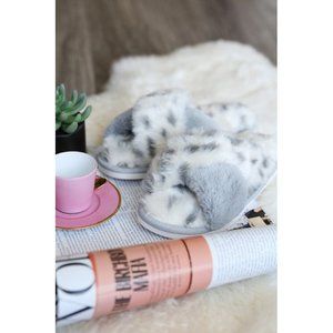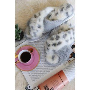Fur Leopard Slippers Gray & White