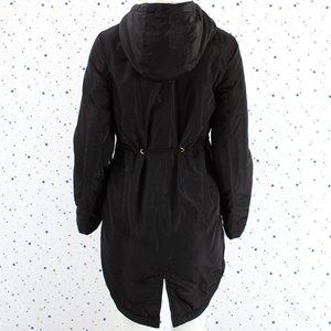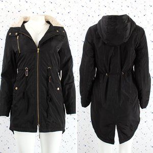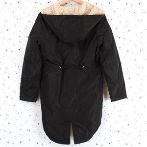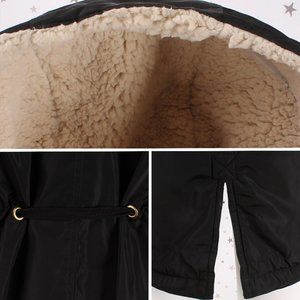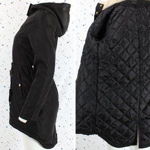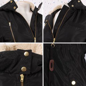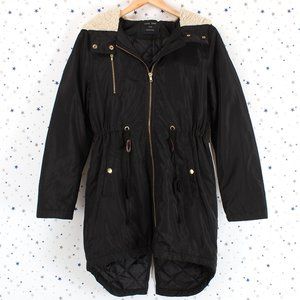 Fur Lined Hood Long Padded Zip Up Jacket Black