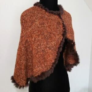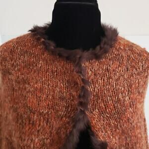 Fur Poncho 100% Dyed Rabbit Fur Lined Knit Outerwear Cardigan