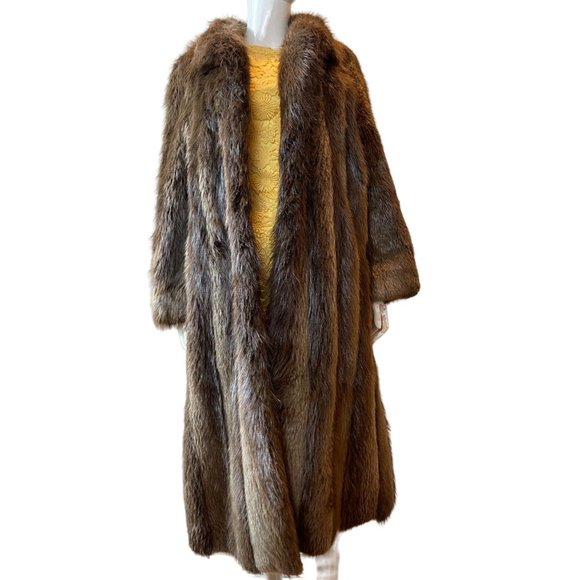 Fur Salon Womens Long Fur Coat Glossy Thick Canadian Beaver Rich Brown Size XL