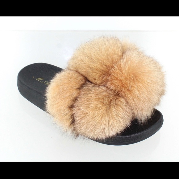 Tan High Quality Faux Fur Slides