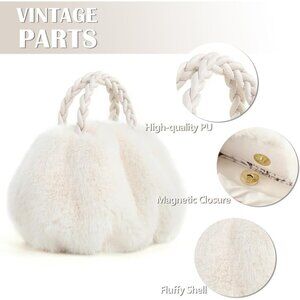 ✨ Fur Story Faux Fur Fuzzy Women White Plush Tote Big Capacity Girls Handbag