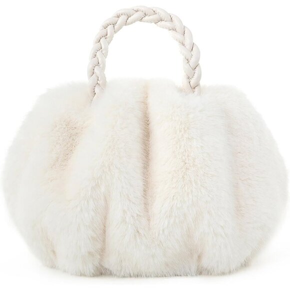 ✨ Fur Story Faux Fur Fuzzy Women White Plush Tote Big Capacity Girls Handbag