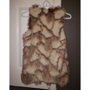 Never before worn with tags still on! Very chic and eye catching faux fur vest. From the brand “Decree”. A beautiful mix of tan, brown, and blonde fur.