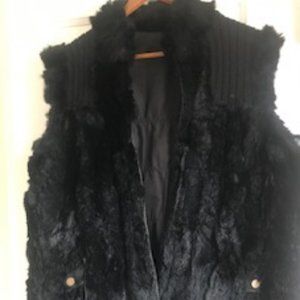 no tags because it is reversable. It is rabbit. Pit is 23 in. I measured again.. NO cats, dogs. Noone smokes in my home. very beautiful vest.