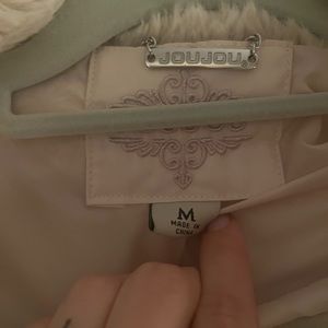 Faux fur, beige/cream coat.
