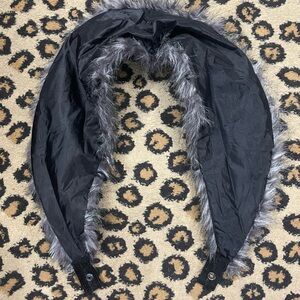 Detachable faux fur collar. Snap button front clossure. Small button hole eyelets. Vinyl lined. Everything is obo bundle and save