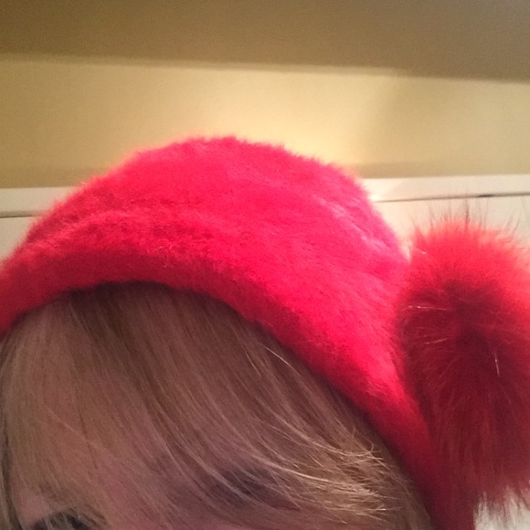 Rabbit fur hat with a side detail Pom in red