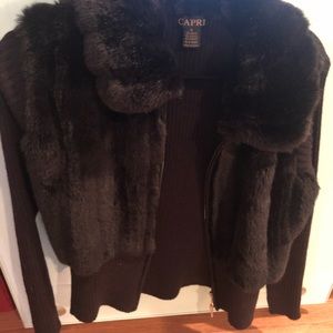 Ribbed sweater jacket with fur vest and collar. Super cute and warm! Worn once! In great condition.