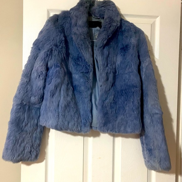 Blur rabbit fur jacket. Has a rip on lining. Only worn twice has wear and as is