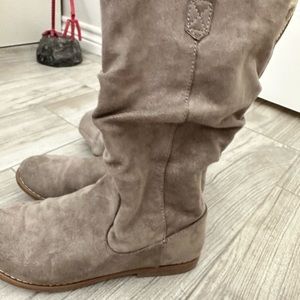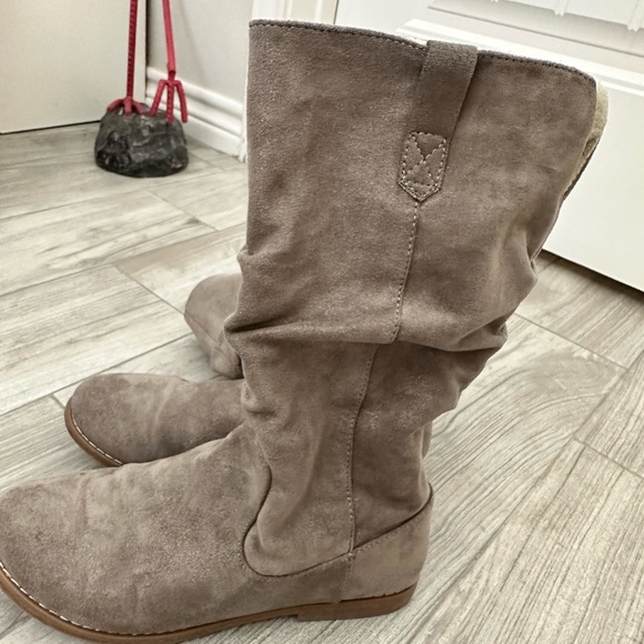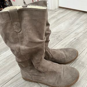 Gently worn fur lined girl boots. Great to wear with jeans, skirts or dresses. They have a very fain shimmer.
