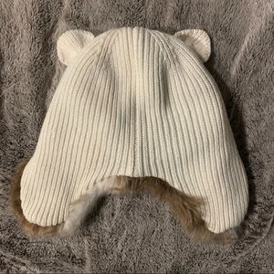 **Fits an adult head as well. Crew brand for kids, crewcut faux fur trapper hat with cat ears. Creamy white color with white and brown fur.