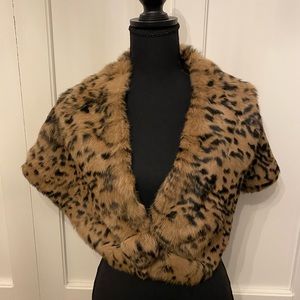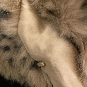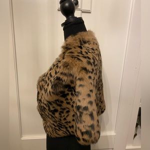 This 100% rabbits fur and 100% silk lined wrap is in perfect condition. It is great for dressy holiday event or a casual evening out. The versatile print can go with your elegant black silk dress, or with jeans and a turtleneck.