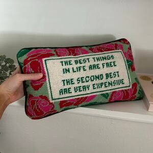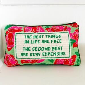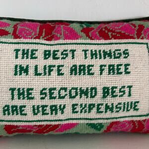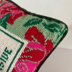 Furbish Needlepoint Embroidered Floral Accent Pillow Green