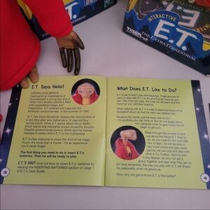 E.T. invites everyone to share the thrill of his magic touch. It's more than a movie - it's an experience you'll never forget. Just like the real E.T., this figure's heart and finger really glow. E.T. has a vocabulary of over 400 words! He has animated eyes and mouth, telescoping neck, and poseable arms! He can communicate with Furby, Furby Babies, Gizmo, Shelby and another E.T. Teach E.T. how to speak, behave and play!" Furby E.T. 2000 The Extra-Terrestrial Interactive E.T. heart & finger glow Rare.Excellent condition.Looks new.He ships fast.Arrives In Original box with original instructions booklet