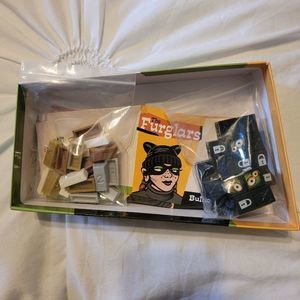 Dice rolling family game. Players take turns rolling an ever-changing quantity of dice hoping to capture Furgles, which are represented by the furry side of each die. Furgles are then traded in for precious Bullion Points. The dice also feature a lock icon which protects Furgles, and a hand icon that can be used to pick locks and steal Furgles from other players.