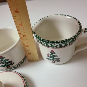 Furio Italy Christmas Tree Set Green Sponge On this cute Sugar Bowl with Lid and Creamer Set