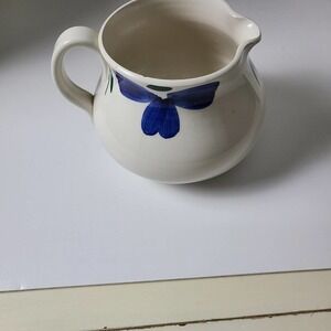 Vintage Jewflora Colorful Furio Large Pitcher was made in Italy Hand Painted a beautiful piece that was well loved but needs a new home use it as a juice pitcher or on a farm table with flowers in it