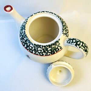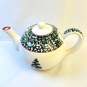 Lovely teapot decorated with a Christmas tree in a green sponge pattern. Matches the complete Christmas tree dinnerware set. Very charming and will be sure to add a festive touch to your holiday table. Produced in the 1990's now retired.
