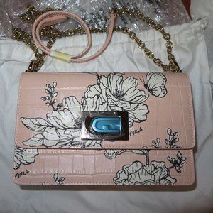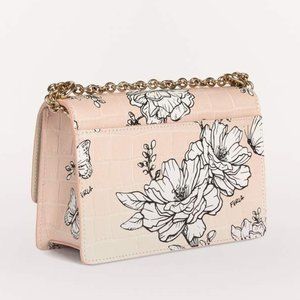 Auth BNWT Furla 1927 Mini Floral Crocodile Print Leather Crossbody Bag.