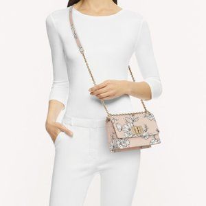 This Furla is a crossbody bag made from crocodile print calfskin with a floral motif.