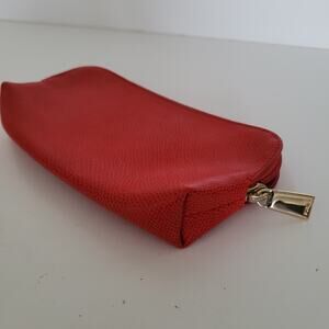 Furla 2 pc Set Case Red Leather Wallet Cosmetic Pouch Small Good Condition