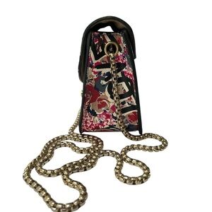 Express your style with this vibrant graffiti love print bag by Furla. Featuring a bold mix of colors, it's perfect for adding a pop of color to any outfit. The gold chain strap adds a touch of elegance. In excellent condition with minor scratches to hardware.