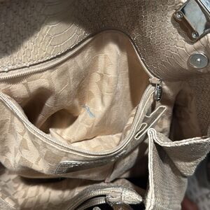 Furla Beige Python Embossed Genuine Leather Shoulder Bag Italy Travel Work Large