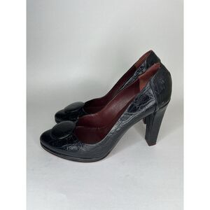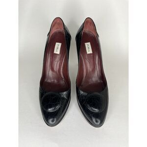 Furla Black Leather Croc Embossed Platform High Heels Women Sz 40EU/9.5M US