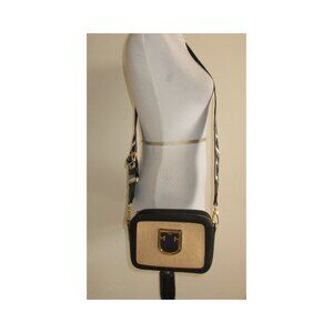 Furla Brava Mini Straw & Black Leather Crossbody Shoulder Bag NWOT