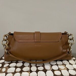 Furla Brown Leather Small Shoulder Bag Gold Hardware Classic Italian Y2K