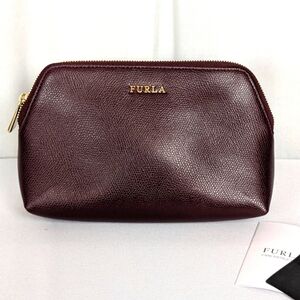 Furla Burgundy Leather Cosmetic/Clutch/Bag Gold Hardware with dust bag NWT