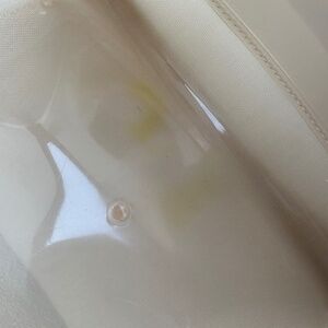 @rho_pete Hello! The discoloration is inside on the bottom of the bag. In photo 7, you can see a faint yellow marking from the discoloration. Definitely not noticeable to the outside eye, though!