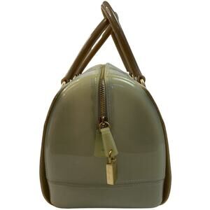 Furla Candy Clear Ivory Blue Large Rubber Satchel Bag Purse 11" X 8.5"