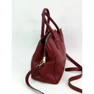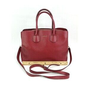 Furla Double Handle Satchel Bag Red Leather Shoulder Hand Bag Purse