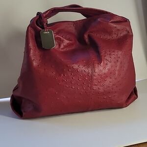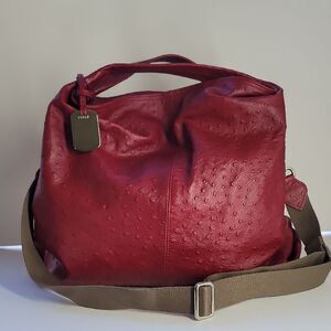 Furla Elisabeth Ostrich Embossed Leather Tote Bag.
