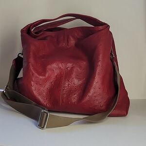 Shopper style tote bag made of beautiful red wine embossed genuine leather