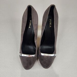 Furla Gray Suede Classic Pumps with Silver Accents.
