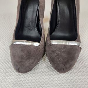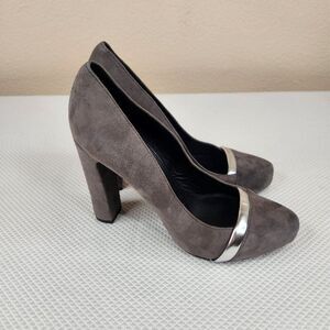 Furla Gray Suede Pumps Shoes Heels Silver Accent Size EU 39 US 8
