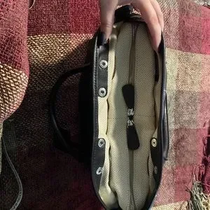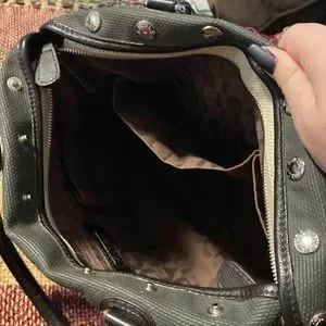 This bag has gotten a lot of love. Please review photos for where the leather has worn, along with some discoloration.