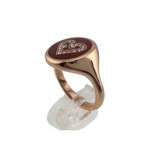 FURLA HEART RING The Furla Heart ring lies at the intersection of glamour and chic. Two interlocking Arch motifs garner attention thanks to the genuine crystal at the center of the rounded hand-polished enamel heart ring. Within the ring, along the part that touches your skin the Furla name is engraved. Colorways: Red enamel and rose gold tone Made with stainless steel, hand polished enamel and genuine crystals.