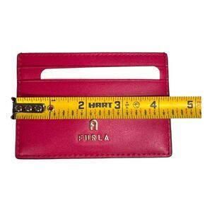 This Furla card holder wallet offers a sleek solution for organizing your essentials. Crafted from genuine leather, it features a vibrant pink hue and multiple card slots, ensuring style and functionality.