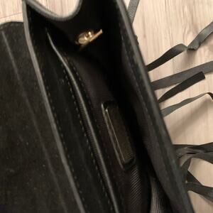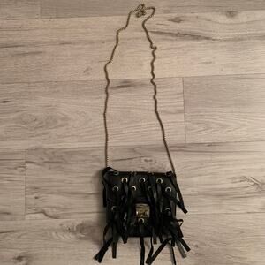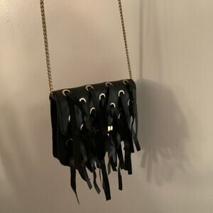 Elevate your everyday style with this Furla leather crossbody bag. Crafted in smooth black leather, it features playful fringe detailing and polished silver hardware for a chic, modern look. Perfect for daily use or evenings out, the adjustable strap allows for comfortable wear while keeping essentials organized. Timeless design meets functional luxury.