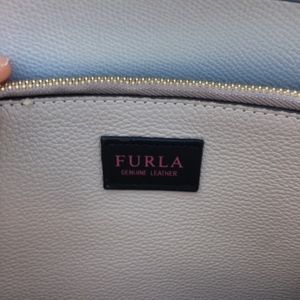 100% soft textured leather handbag purchased in Italy. Used once. Medium size bag with metal applications, logo, basic solid color, zipper, internal zip pocket, double handle, adjustable shoulder strap, removable shoulder strap, contrasting interior color.